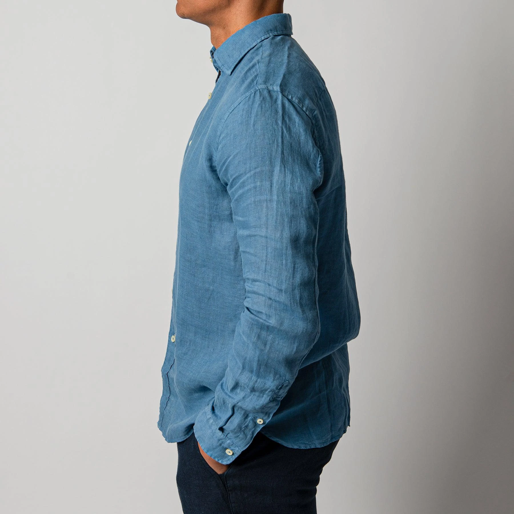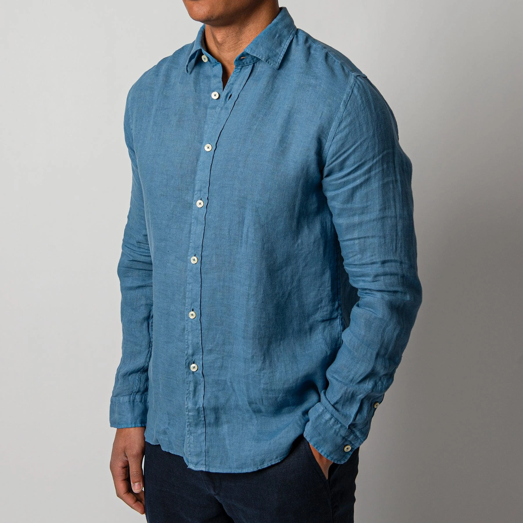 • Skjortan är sydd i en tunn och sval linnekvalité.