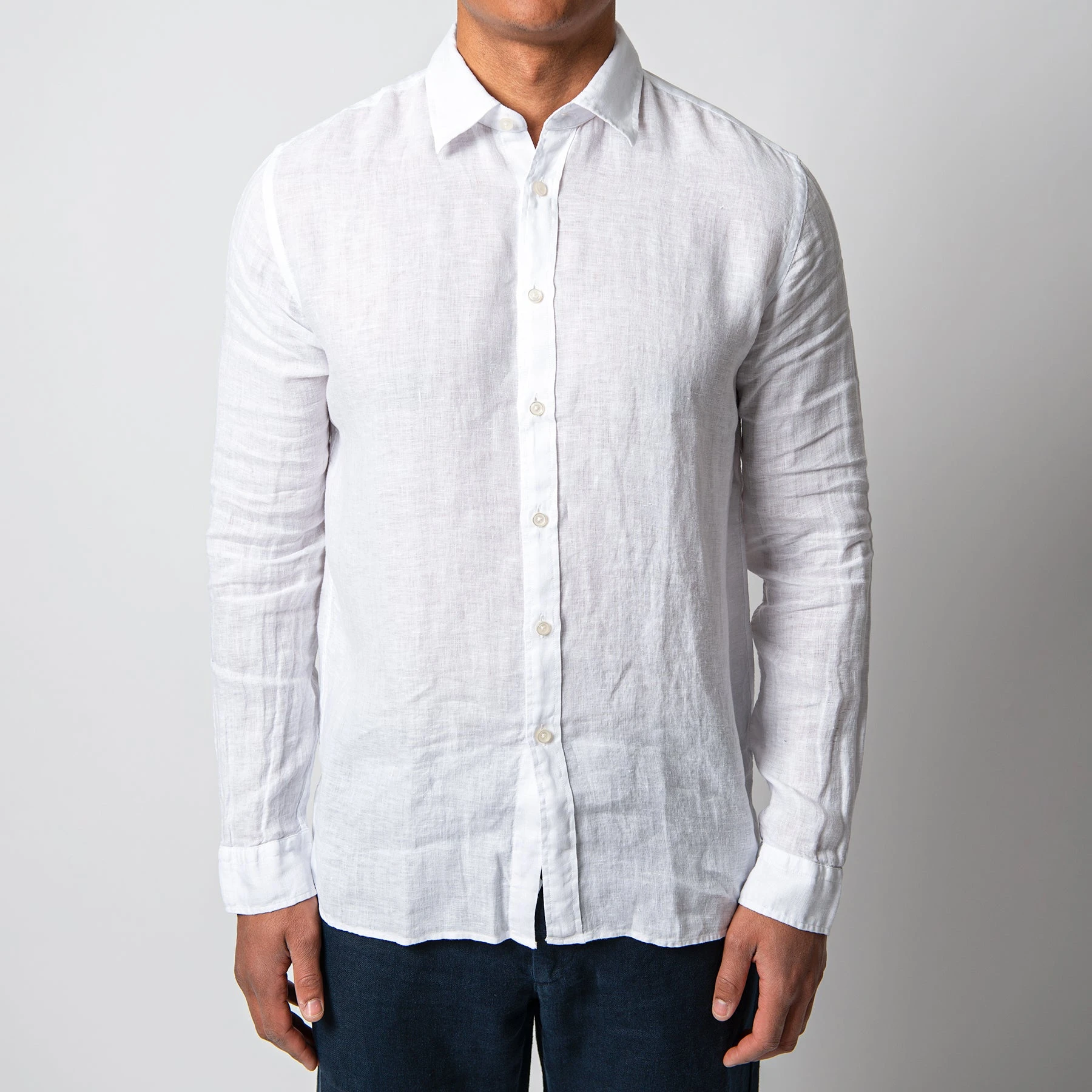 • Skjortan är sydd i en tunn och sval linnekvalité.