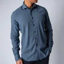 • Skjortan stängs med knappar och har en klassisk ouppbyggd krage. Skjortan är i en slimmad passform.