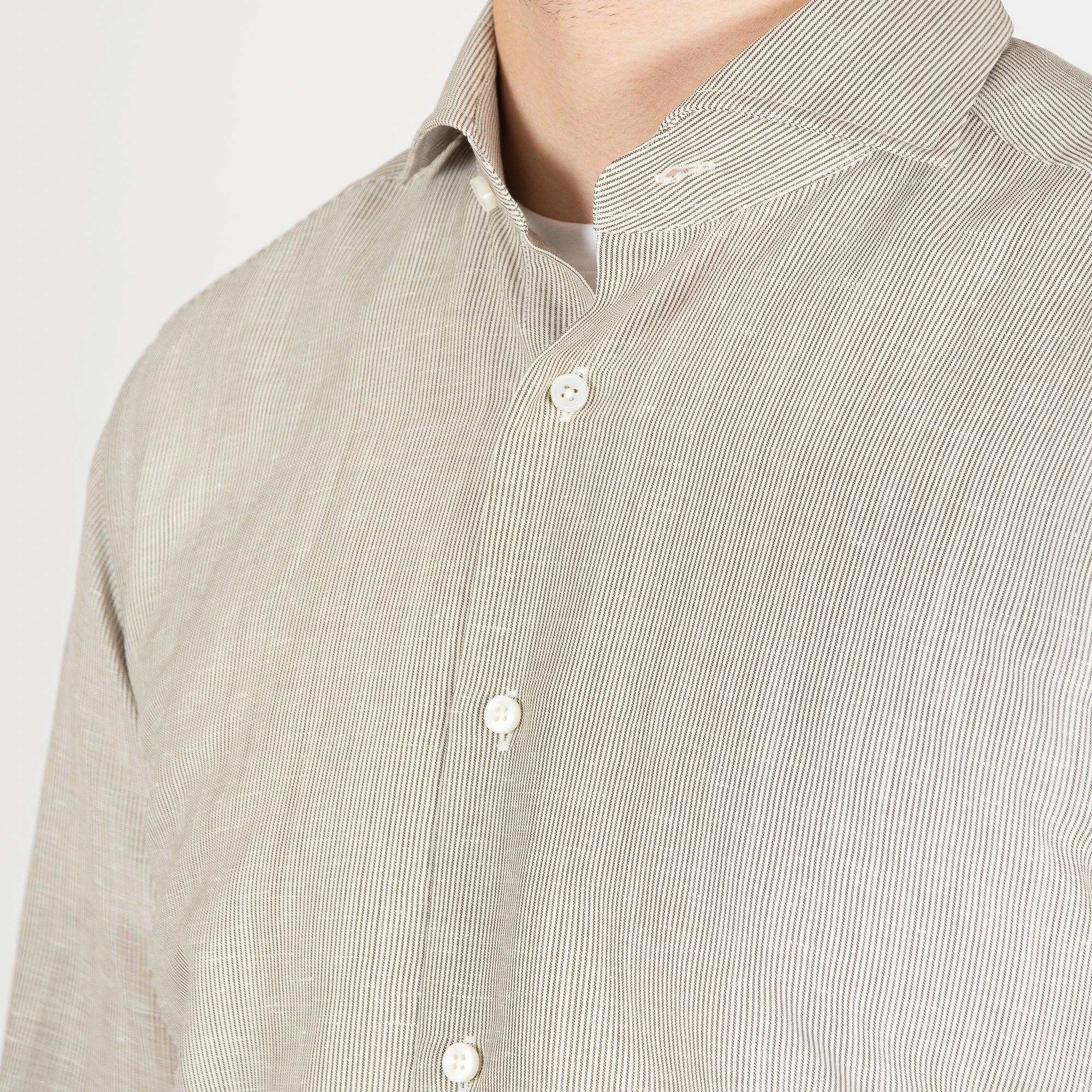 • Skjortan är i en mjuk och sval linné- och merinoullsblandning.